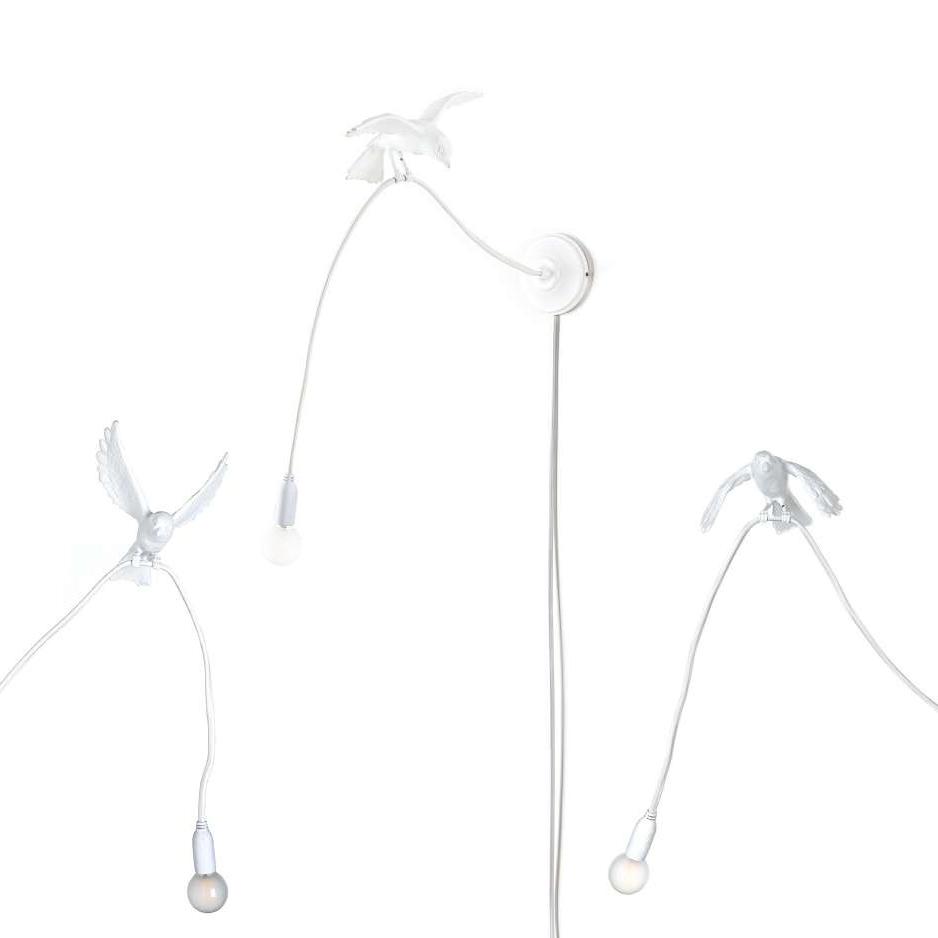 Par Sparrow Seletti on voit la vitalité de ces oiseaux qui vigoureusement apportent la lumière. Le designer a voulu récréer ce moment où on observe un oiseau secrètement engagé et le spécial cordon de ces lampes récrée la magie typique de ces oiseaux. Ampoule fourni: LED E14 2W 2200K 55 Lumen. Dimensions: 100x10 cm