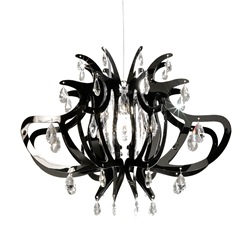 Slamp Lillibet reporte à la lingerie en soie et aux transparences, d’une façon inédite et nettement contemporaine. Elle associe à l’élégance des formes des choix de chromatiques de bon goût. Le résultat est toujours raffiné et séduisant, même grâce à de précieux pendentifs en cristal qui la rendent indiquée à une chambre à coucher romantique. Lampe pendante avec 56 cristaux et la coupe de chrome