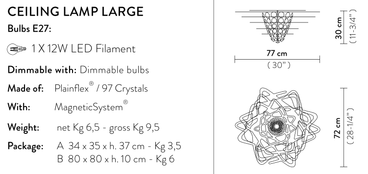 Slamp Aurora est une cascade de cristaux amplifie la lumière de ce plafonnier raffiné, qui semble vouloir quasiment voltiger au rythme de ses reflets, tandis qu’elle répand de la grâce et de l’élégance dans toute la pièce. Un choix aussi bien fonctionnel que romantique, grâce au support magnétique, pour tous les espaces qui aiment briller.