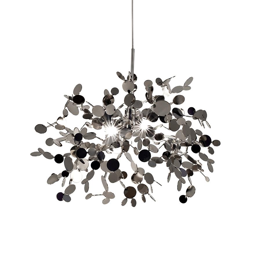 Par la lampe à suspension Argent Terzani, le designer Dodo Arslan crée un nuage brillant. Argent Terzani se compose de disques métalliques qui ont été méticuleusement façonnés à la mains par artisans Terzani en cluster. Une fois allumées, les surfaces multiples et angulées des disques émanent un lueur doux et brillant. Ampoules non fournies: 3 x 2W G4 LED.