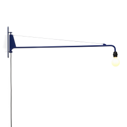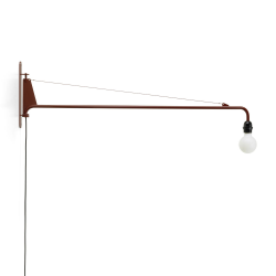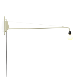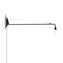 Jean Prouvé a créé la première version de la lampe murale Potence pour sa propre maison à Nancy dans les années 1940 : une simple ampoule fixée à une longue barre pivotante en acier, maintenue par un fil d‘acier. Cette création épurée et fonctionnaliste a rapidement été produite en différentes tailles, avec une poignée supplémentaire sur les modèles plus grands pour faciliter le mouvement pivotant.
