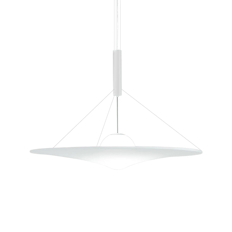 Manto Axo Light exprime sa vraie personnalité dans le mouvement réciproque de géométries simples. Avec savoir artisanal et nature dynamique elle sait changer dans la forme et varier l'effet lumineux emmené dans l'espace, entre étonnement et technologie. Manto Axo Light conçue par Davide Besozzi est une collection de lampes à suspension, qui se décline en trois dimensions. La sphère en verre soufflé blanc opale qui contient une source lumineuse à LED est soutenue par un bras télescopique qui, une fois actionné, permet de disposer la sphère à plusieurs hauteurs: suspendue à distance ou immergée dans le tissu élastique. A son tour le corps cylindrique par tirants en acier maintien en position horizontal le cercle en tissu blanc. La forme que prend la lampe et la lumière diffuse dans l'espace changent selon la disposition du diffuseur. Avec son élégance discrète, Manto peut éclairer de charme milieux même très différents, toute seule ou en compositions multiples. LED integrée 21W 3000K 2438lm CRI>90.