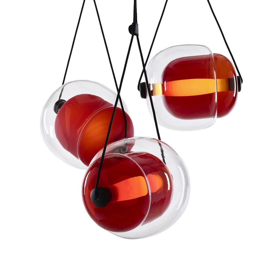 BROKIS lampe à suspension CAPSULA TRIANGLE (Extérieur transparent, intérieur rouge - Verre)