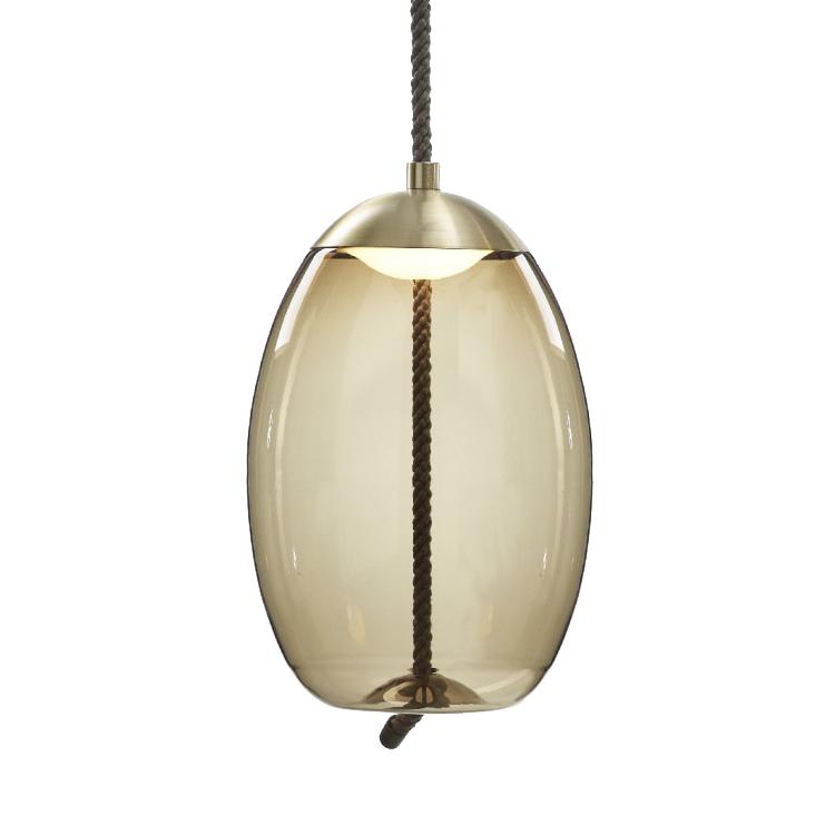 BROKIS lampe à suspension KNOT UOVO PC1018 (Brun fumé et laiton - verre et métal)