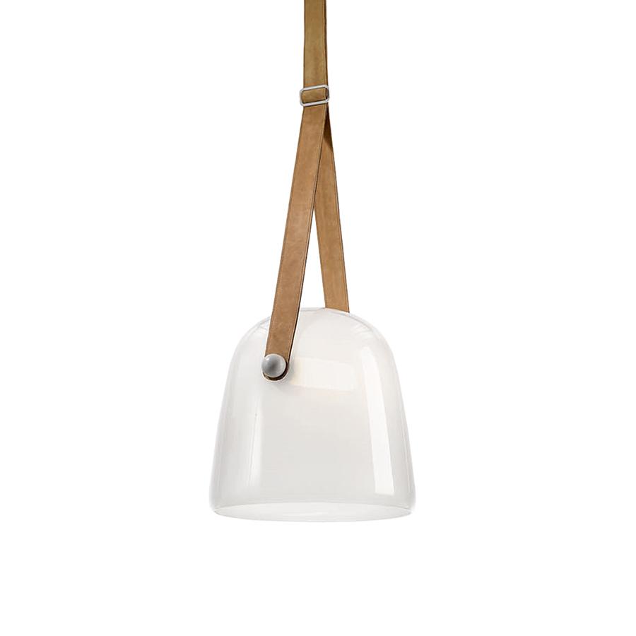 BROKIS lampe à suspension MONA LARGE PC938 (Opalin et bracelet naturel - Verre et cuir)