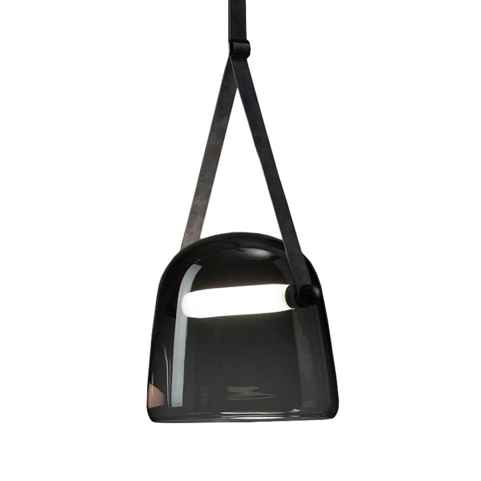 BROKIS lampe à suspension MONA XL PC1030 (Noir et bracelet noir - Verre et cuir)