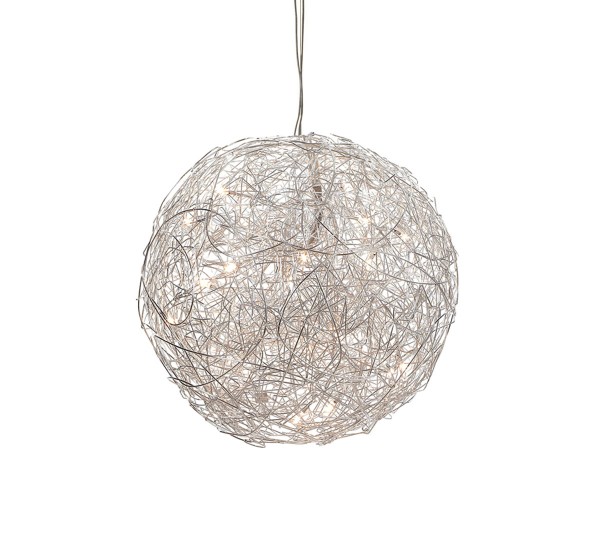 Base en métal chromé, sphère en fil d'aluminium naturel