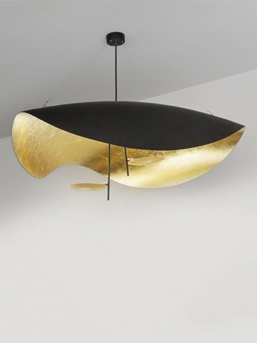 CATELLANI & SMITH lampe à suspension LEDERAM MANTA S1 (Noir and or / tige noire / disque or - Métal)