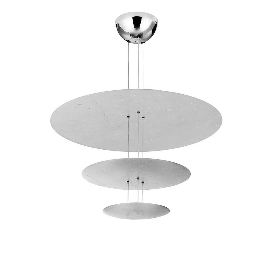 Macchina della Luce Catellani & Smith émerge de la collection Luci d’Oro, qui est née elle aussi en tant que réflexion sur la couleur de la lumière : la lumière dorée du soleil, du feu ; des lumières chaudes, où le concept de réfraction commence à prendre forme dans l’esprit d’Enzo Catellani, qui l’appliquera souvent à d’autres créations. Disques diffuseurs en aluminium revêtus en feuille (disque Ø 120 cm avec feuille libre), tiges en laiton ou aluminium, base nickel. Carte LED 24V CC / 5x6W / energy class F / lumen 3325 lumen / 2700 K / CRI 80. Transformateur 24V CC à basse tension 220-240V dimmable Triac (version dimmable 1-10V ou DALI disponible sur demande). Base Ø 21×10,5 H cm. Tiges H 145 cm variable (sur demande 300 cm). Disques Ø 80-50-30 cm. Poids 8 kg.