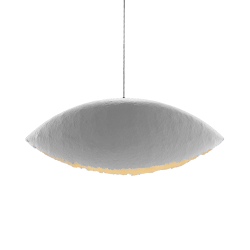 Avec PostKrisi Enzo Catellani commence à travailler et à modeler la fibre de verre. Cette matière le fascine par son incroyable polyvalence et par sa résistance, mais surtout par les jeux d’ombres qu’elle crée lorsqu’elle interagit avec la lumière. Base en métal, diffuseur en fibre de verre.