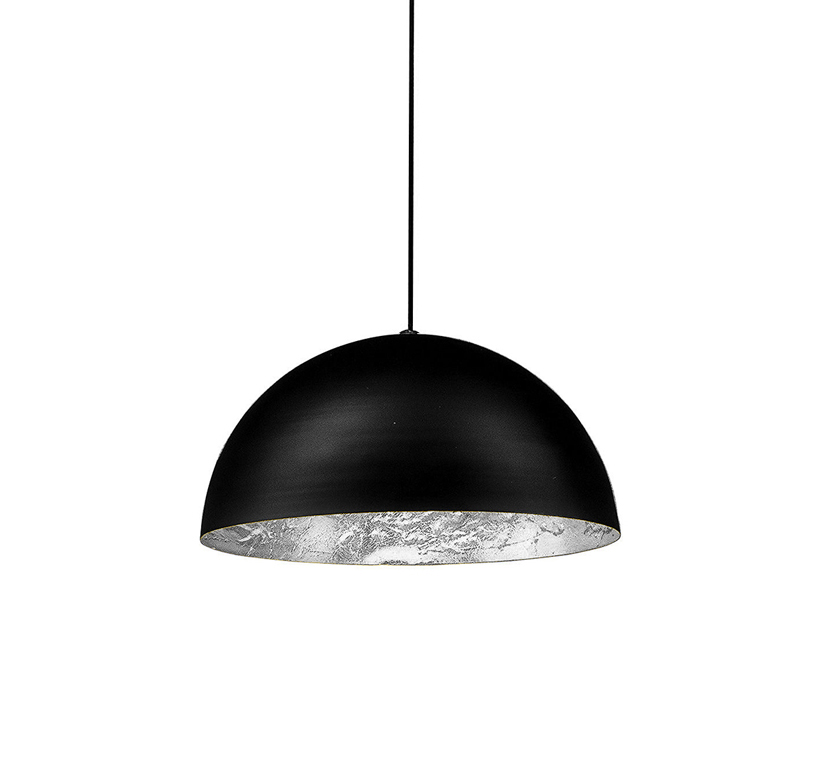 STHCU-MOON 02 Catellani & Smith est une lampe à suspension réalisée avec une demi-sphère en aluminium en diamètre différent, avec superficie interne irrégulière brevète en feuille couleur argenté, dorée, ou bronze, extérieur noir opaque, porte lampe en acier, base nickel. Ampoules: 2x5W LED board / Triac dimmable