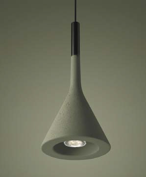 Aplomb Foscarini est une petite suspension en ciment proposée en six finitions chromatiques qui soulignent sa personnalité, en rencontrant des styles diverses: du gris classique du ciment brut, qui donne de la profondeur aux volumes, à l’élégante coloration blanche, à un marron chaud et intense.Les nuances rouge brique, jaune sable et vert olive s'ajoutent ainsi aux teint dejà disponibles au catalogue. Idéale sur les petites tables, les péninsules et les comptoirs, seule ou en composition. Au jour d’hui la technologie LED épouse l’attrait matiérique et contemporain du ciment dans une nouvelle version de la lampe Aplomb à suspension. La longue durée de la source lumineuse permet de réduire les interventions d’entretien, alors que son efficacité particulière est une valeur ajoutée en termes d’économie énergétique et de durabilité écologique.