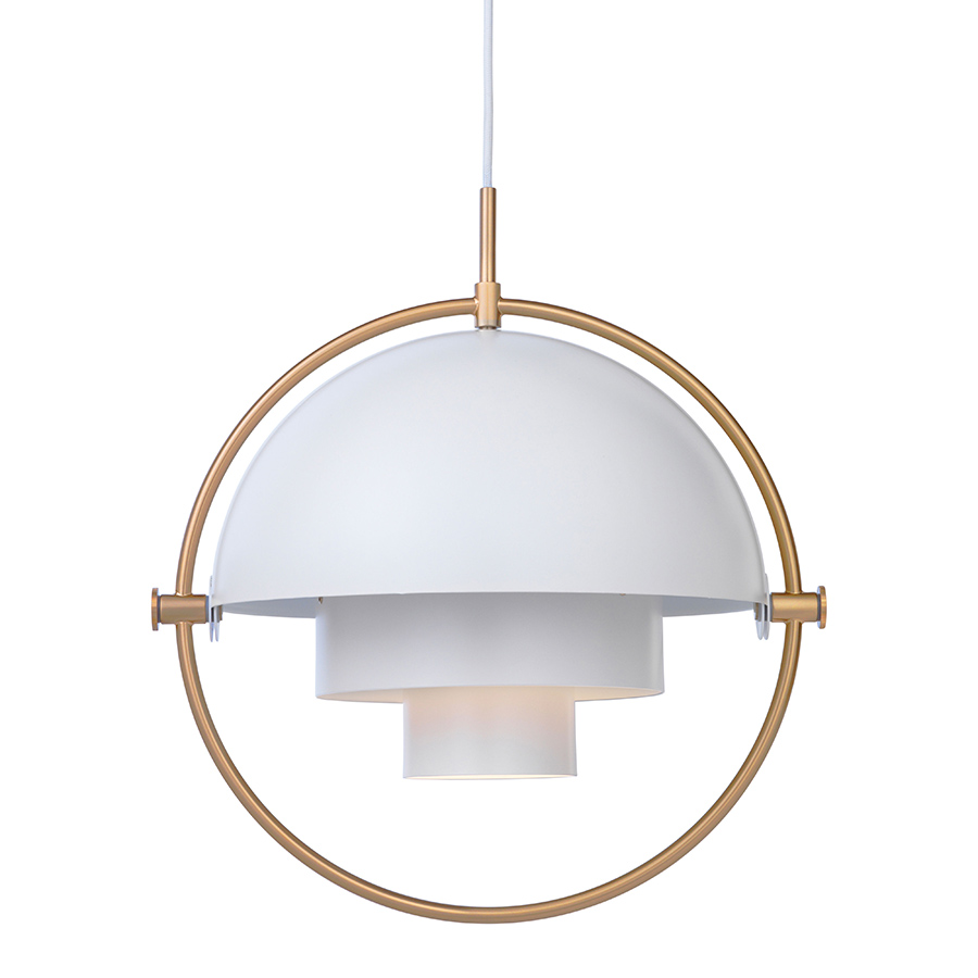 Avec sa superposition de formes simples et architecturales, Multi-Lite Gubi est typique des luminaires de l’âge d’or du design danois. Vintage et raffinée, cette suspension en métal est une réédition du modèle dessiné en 1972 par Louis Weisdorf, designer et architecte danois. Multi-Lite se caractérise par une fonctionnalité remarquable. L’abat-jour mobile change de forme et permet une multitude d’éclairages différents. La partie centrale de l’abat-jour est fixe : elle se compose de deux cylindres emboîtés qui contiennent la source lumineuse. Autour des cylindres, la coupole extérieure se compose de deux demi-sphères qui pivotent de haut en bas. On peut bouger ces deux parties mobiles indépendamment l’une de l’autre afin d’obtenir une multitude de configurations. On peut ainsi orienter la lumière vers le bas (éclairage direct) ou vers le haut (éclairage indirect), ou bien créer un superbe effet lumineux asymétrique.