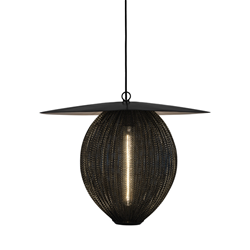 La collection Satellite Gubi de deux lampes à suspension aux formes géométriques et une forme naturelle a été conçue par Mathieu Matégot en 1953 pour créer magnifiques esthétiques sculpturales. Le nom, Satellite, a été donné par Matégot comme hommage au progrès scientifique en France pendant les années après la Deuxième Guerre Mondiale. La Collection Satellite a le trait distinctif de Rigitulle, technique et matériau inventés par le designer lui-même qui permettent de plier et replier le tissu comme tôle à une lampe à suspension originale, oblongue. L'abat-jour peu être de cinq couleurs et il est unique avec son ampoule couverte par métal perforé pour projeter une lumière atmosphérique - en créant un aspect festif. L'interaction de la lumière et l'ombre projetés sur les murs et le sol produit un élément spectaculaire dans une salle à manger ou un restaurant. Pendante seule la lampe à suspension Satellite comme pièce caractéristique ou en multiples pour créer un nuage de luminosité.