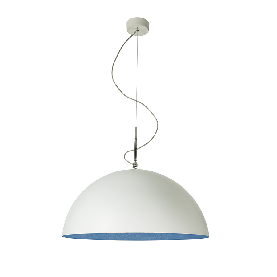 Mezza luna In-Es.Artdesign, suspension au design pur et évocatoire, est réalisée enMezza luna, suspension au design pur et évocatoire, est réalisée en en différentes combinaisons de couleur qui habillent la surface avec un voile opaque et couvrant, créant un contraste intéressant entre son intérieur et son extérieur. Ampoule exclue E27 (max 105w power light).