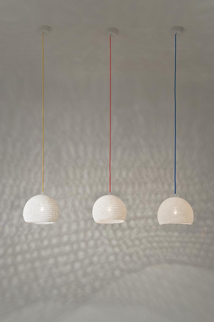 Trama In-Es.Artdesign c'est une collection caractérisée par une structure en tissu à maille entièrement fait main mélangé avec des résines spéciales. L'«effet crochet» suggestif de la lumière et de l'ombre sur les murs crée une atmosphère chaleureuse et intense. Ampoule non fourni: E14 (max 30w) rec. LED 6w