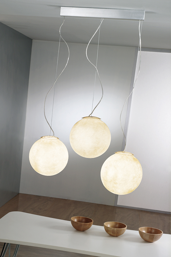 Tre lune est la suspension idéale pour le salon et la salle à manger. C’est un luminaire au design évocatoire et élégant, réalisé en nebulite®, un matériel étudié et créé chez In-es.artdesign pour donner une lumière douce et à la fois intense d’atmosphère, caractéristique que l’on trouve sur tous les produits de la marque. Ampoule exclue 3 x E14 (max 3 x 11w CFL).