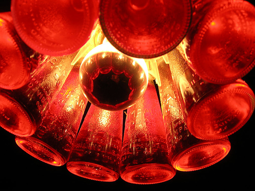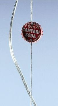 Il s'agit d'un pendentif lampda composé de pas moins de 10 bouteilles de Campari original.