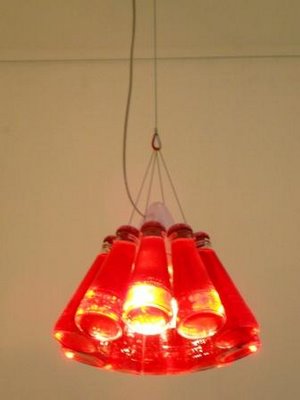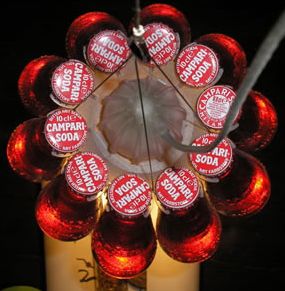 Il s'agit d'un pendentif lampda composé de pas moins de 10 bouteilles de Campari original.