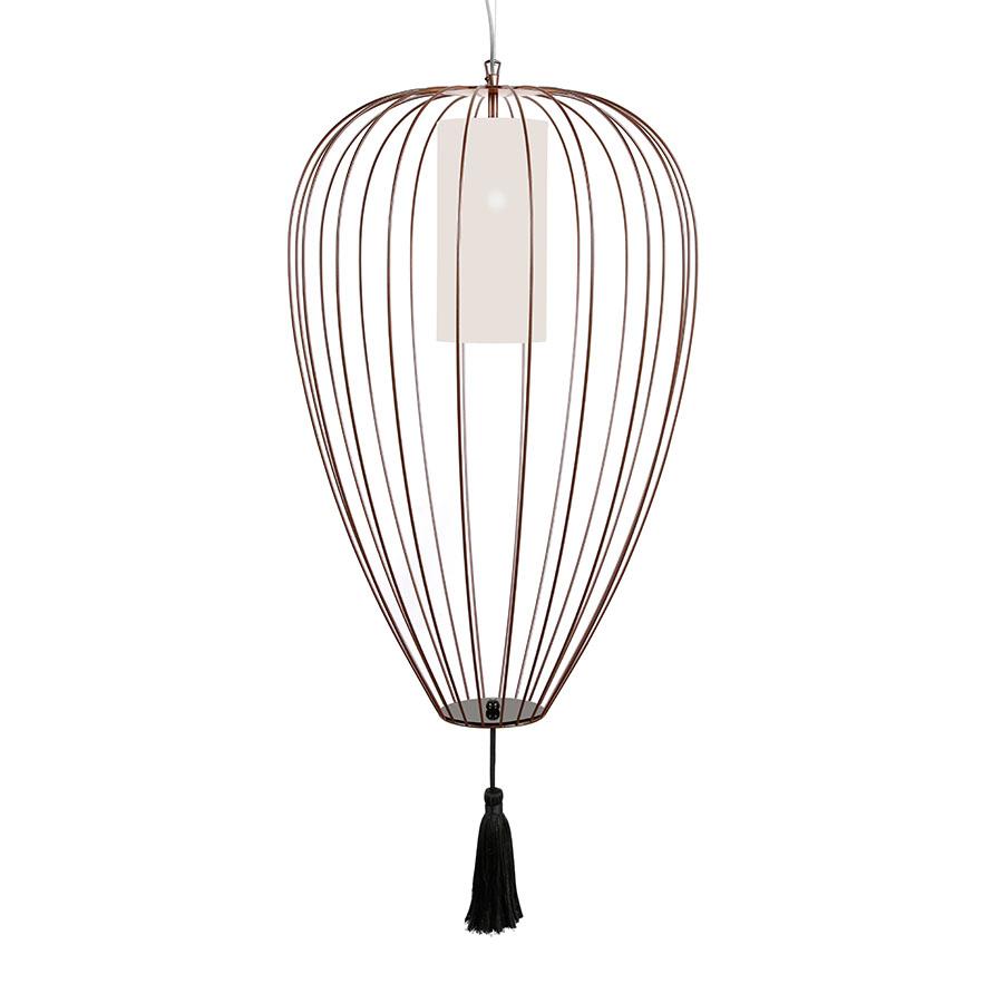 Plus d'il y a deux mille ans en Chine on prévoyait le vol des premières lanternes au ciel. Cell Karman en claque la structure et l'esprit, en serrant l'air par un subtil fil métallique ou dans la nouvelle version bronze, cage de lumière qui en exalte la force. L'abat-jour est un cœur lumineux en lin pour la version indoor et en plexiglass opale pour celle outdoor. Ampoule non fourni E27, 1 x max 52W.