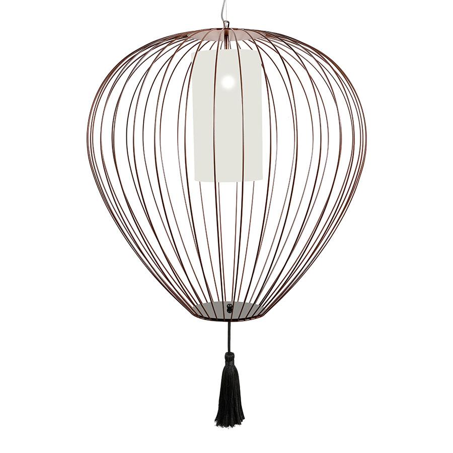 Plus d'il y a deux mille ans en Chine on prévoyait le vol des premières lanternes au ciel. Cell Karman en claque la structure et l'esprit, en serrant l'air par un subtil fil métallique ou dans la nouvelle version bronze, cage de lumière qui en exalte la force. L'abat-jour est un cœur lumineux en lin pour la version indoor et en plexiglass opale pour celle outdoor. Ampoule non fourni E27, 1 x max 70W.