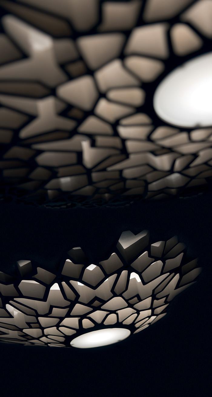 Évoquer le charme de la lumière naturelle qui irradie par les rosaces des cathédrales gothiques... Dans Notredame Karman coexistent présent et future, forme et lumière: la qualité poétique cache une âme technologique en réveillant émotions très anciennes. Notredame Karman se teint d'or pour devenir protagoniste même des milieux les plus élégants et sophistiqués. La nouvelle coloration, grâce aux reflets métalliques, souligne les effets de la lumière entre les pleins et vides de sa texture tridimensionnelle. LED integrée 24V, 16W, 1800 lm (frontal:13W 1520 lm) (backlight:3W,280 lm), CRI=80, class A+, cut phase dimmable