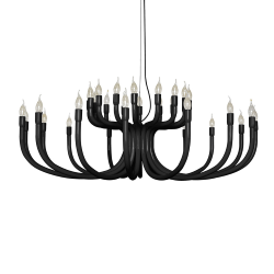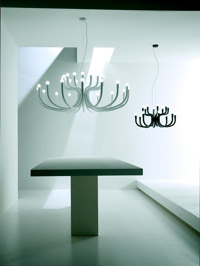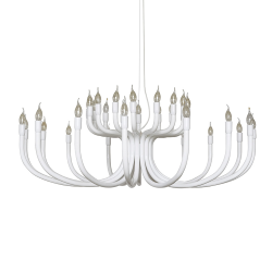 Sa silhouette rappelle les lustres qui dominent les palais riches et baroques de la noblesse sicilienne, rappelant l'ocelot ; mais sa métamorphose vers la propreté la plus extrême fait que Snoob peut être placée n'importe où tout en gardant toujours sa grandeur. Des bras aux lignes épurées et harmonieuses qui s'épanouissent vers le haut en dirigeant la lumière dans tous les coins de l'environnement. Structure en aluminium laqué blanc ou noir ou RAL personnalisable sur demande. Ampoules non fournies: E14 32 x max 42W