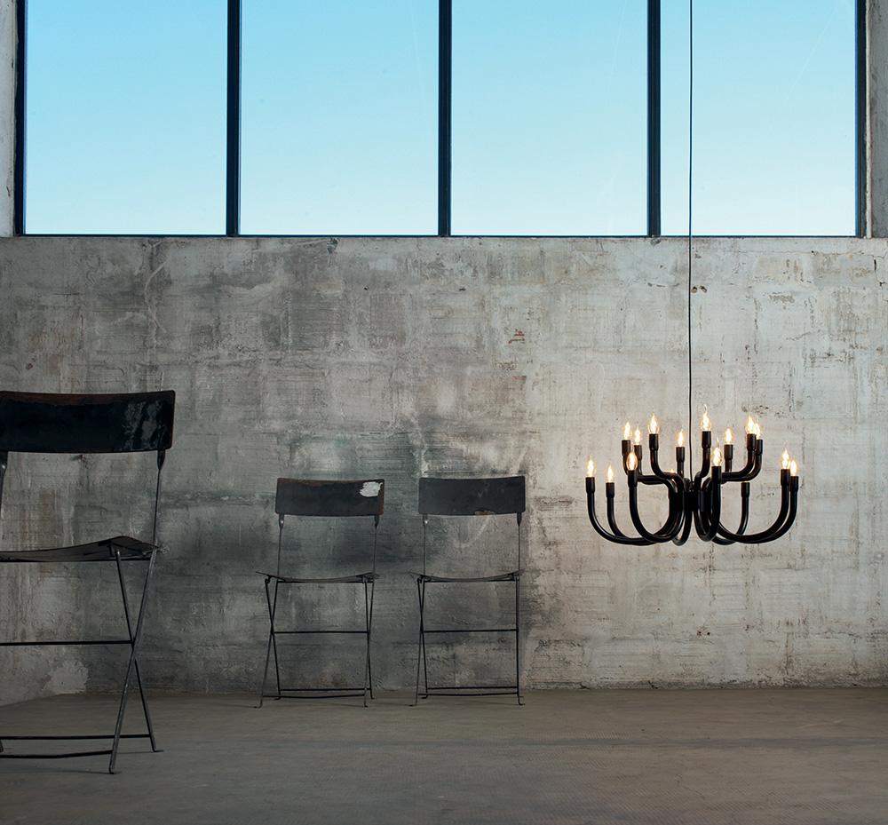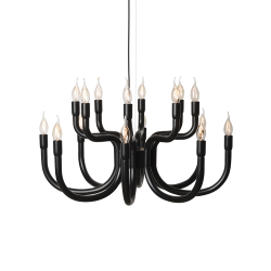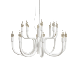 Sa silhouette rappelle les lustres qui dominent les palais riches et baroques de la noblesse sicilienne, rappelant l'ocelot ; mais sa métamorphose vers la propreté la plus extrême fait que Snoob peut être placée n'importe où tout en gardant toujours sa grandeur. Des bras aux lignes épurées et harmonieuses qui s'épanouissent vers le haut en dirigeant la lumière dans tous les coins de l'environnement. Structure en aluminium laqué blanc ou noir ou RAL personnalisable sur demande. Ampoules non fournies: E14, 20 x max 42W