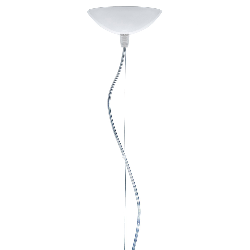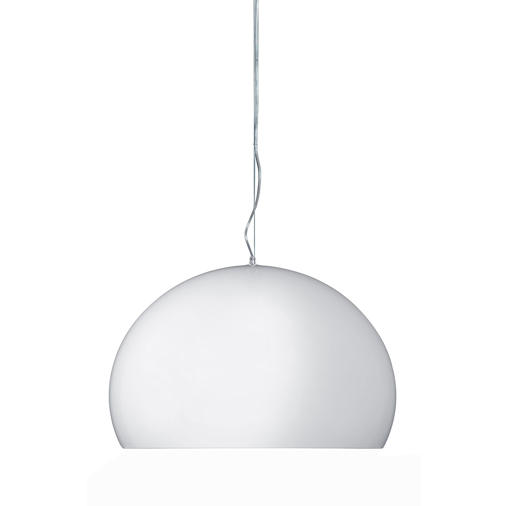 La suspension iconique Fly Kartell à demie-sphère conçue par Ferruccio Laviani (qui a marqué en 2002 la renaissance de la ligne Illumination avec le nouveau brand Kartell Lights), est maintenant proposée en version large et small pour aller au-devant des exigences fonctionnelles et décoratives les plus variées, également grâce à la riche articulation de la gamme en beaucoup de variantes chromatiques transparent ou opaque.