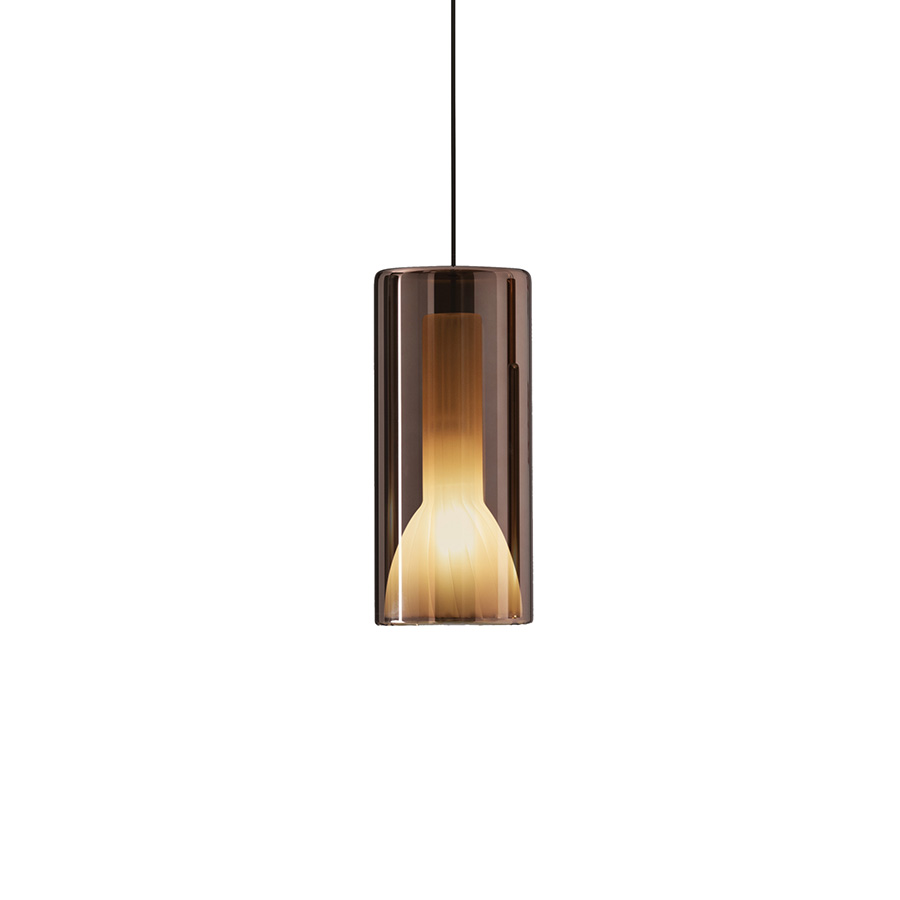 Lit Penta Light est une lampe à suspension changeante qui change avec la lumière. Éteinte, Lit semble une sculpture suspendue, un tube essentiel rendu précieux par les réflexes qui se réverbèrent sur le verre. Allumée, la lampe révèle un esprit lumineux, chaud et gentil. Lampes avec structure en métal chromé brillant et verre borosilicate. Diffuseur intérieur rayé sablé . Rosace au plafond blanc. Ampoule non fourni: 1x 5W - E14 LED.