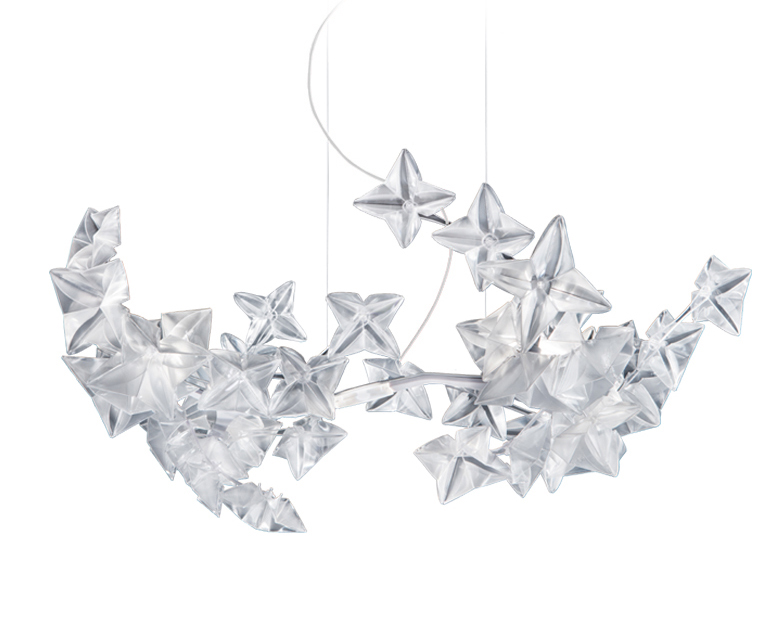 Hanami Slamp s’inspire de la traditionnelle coutume japonaise, qui consiste à s’émerveiller de la floraison des cerisiers et de la finesse de leurs fleurs. Littéralement « observer les fleurs », Hanami, délicate et poétique, symbolise la beauté de l’existence, sans renoncer pour autant à la technologie de l’éclairage à LED. Soigneusement travaillées et plissées à la main, les 40 fleurs en Lentiflex® – matériau incassable qui permet de recréer la préciosité du diamant – composent un bouquet régulier à la coloration délicate et changeante qui se distribue sur la structure portante en aluminium laqué et polycarbonate. Ampoules incluses 5 X 5W G9 LED Dimmable