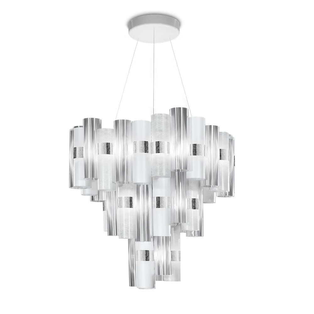 SLAMP lampe à suspension LA LOLLO (Pewter / White - Cristalflex® / Lentiflex® / Pewterflex® brossé)