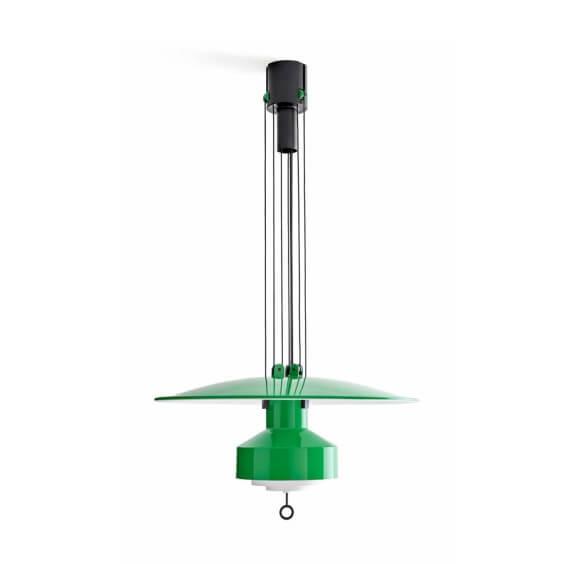Concept de 1957 réalisé en deux pièces uniques pour la Chambre de commerce de Milan, Saliscendi Stilnovo est aujourd'hui réaménagé avec des sources LED dimmables. Un bijou technologique caché de la plupart des gens et enfin révélé, Saliscendi est une lampe réglable en métal à double émission. Le corps lumineux et le disque réfléchissant glissent silencieusement le long des câbles, se déplaçant grâce à un système de poulies, assurant un éclairage parfaitement modulable. Les deux éléments, qui se déplacent en sens inverse, diffusent une lumière plus directe ou indirecte en fonction de la distance qui les sépare.