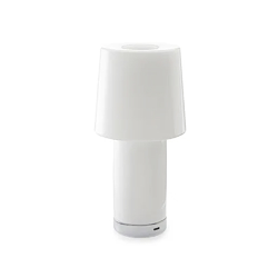 Le bouton touch transparent permet l'allumage, l'arrêt et le réglage de l'intensité de la lumière. La lampe est alimentée par une batterie dont la durée est de 8 heures et rechargeable par un câble avec prise USB inclus. Alimentation sur la prise non inclus. Utilisation intérieur/extérieur. LED integrée 2x0,7W 2700K, CRI>80, 220Lm, touch dimmer.