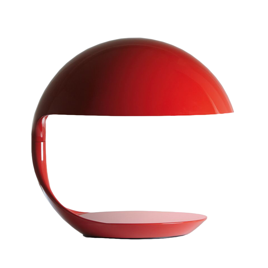 Cobra Martinelli Luce lampe, comme enveloppée dans une sphère se présente sous forme de deux plans horizontaux séparant le réflecteur de sa base. Le réflecteur tourne autour d’une articulation centrale pour recréer de nouvelles formes arrondies. Sa forme sinueuse, dynamique et rapide comme l’éclair ressemble au Cobra se balançant, hypnotisé par la musique, toujours prêt à bondir. Conçue et produite en 1968, elle fut moulée avec une résine thermodurcissable, brillante, couleur blanc ou noir. Pour fêter ses 50 ans de production, elle est aujourd’hui proposée en édition spéciale signée, couleur rouge. Ampoule exclues LED 1x12W E27