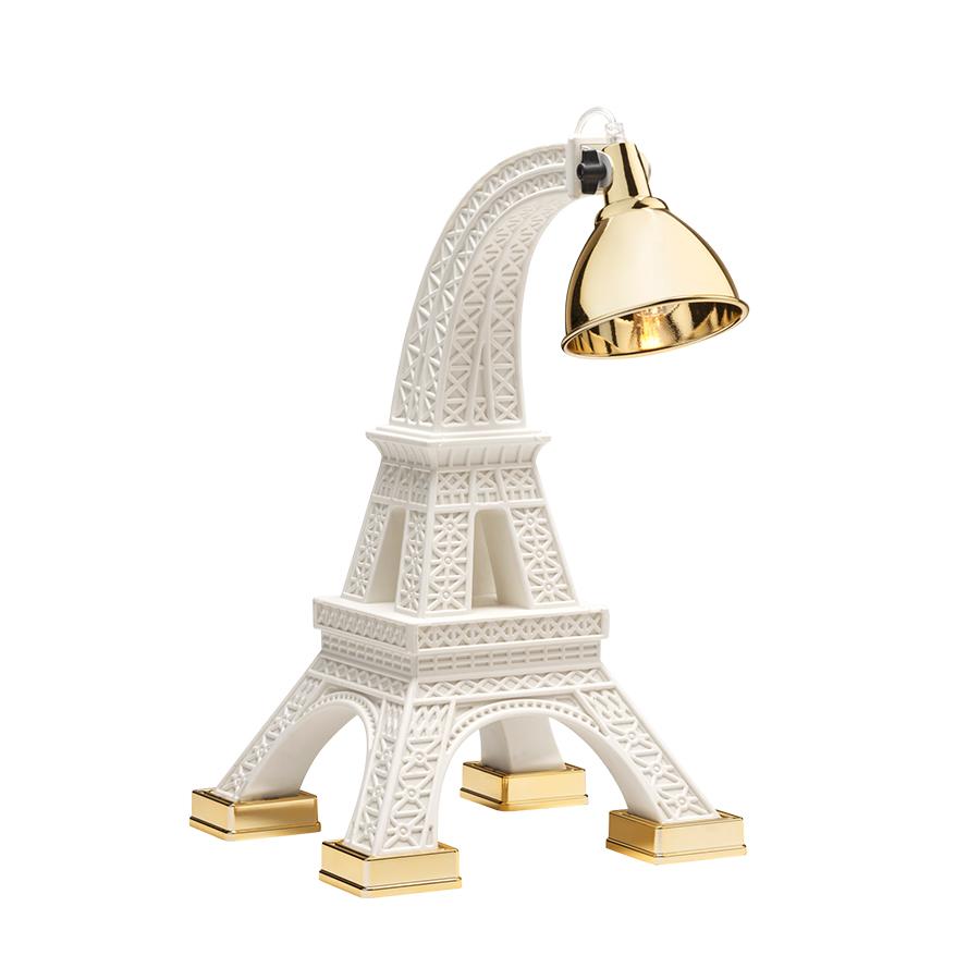 Paris M Qeeboo, conçue par Studio Job, est une lampe qui représente la Tour Eiffel en miniature qui s'adapte parfaitement à toute table de nuit et table de lecture. Idéale pour donner une touche de glamour à n'importe quelle maison. Le diffuseur en forme de dôme, placé sur le corps, est complètement réglable pour focaliser toute surface de lecture. E14 LED 6W.