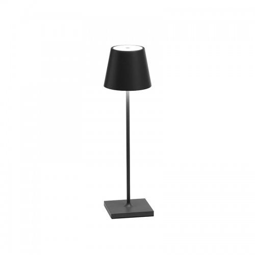 Poldina Zafferano est une lampe de table rechargeable, comprenant une base de chargement par contact, avec corps en aluminium peint, diffuseur en polycarbonate et source de lumière LED. La lampe s'allume et s'éteint via un bouton tactile situé sur le dessus du diffuseur ; avec le même bouton, il est possible de régler la température de couleur de la lumière (2200K, 2700K ou 3000K) et l'intensité du flux lumineux. La lampe dispose également d'un indice de protection IP65, ce qui la rend adaptée à un usage interne et externe.