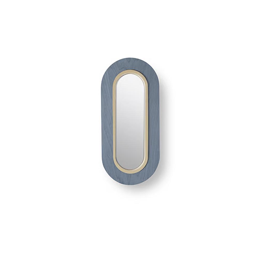 Le mur de la lentille ovale est disponible dans les placages en bois suivants : cerisier naturel, blanc ivoire, hêtre naturel, jaune, orange, rouge, bleu, gris, rose pâle et bleu marine. Les finitions métalliques sont noir, ivoire mat ou or.