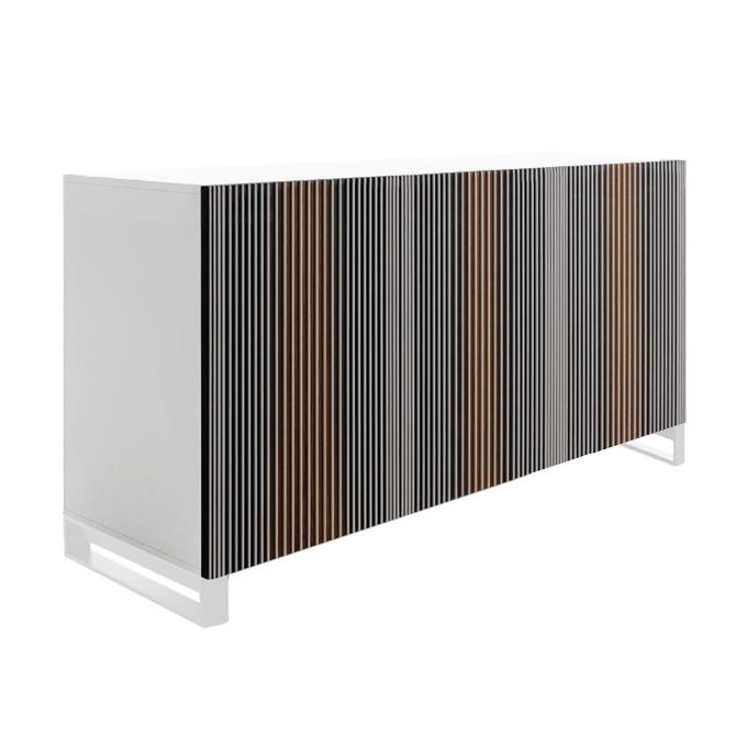 Le buffet Carlos Horm est librement inspiré par les oeuvres de l’artiste vénézuélien Carlos Cruz-Diez et son oeuvres d’art, qui regarde est pas un spectateur, mais un acteur qui interagit avec le meuble lui-même, en variant la couleur en fonction du point de vue, en percevant l’effet d’un rideau qui s’ouvre et se ferme. Les portes de Carlos Horm sont faites entièrement à la main par des artisans qui savent comment traiter le bois de différentes façons les plus passionnantes. Ils mettent leurs compétences et leur professionnalisme au service des architectes et des designers, en se montrant des partenaires idéaux pour transformer l’idée des créatifs en réalisation.