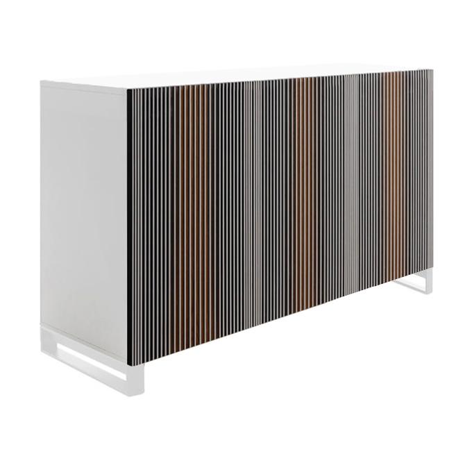 Le buffet Carlos Horm est librement inspiré par les oeuvres de l’artiste vénézuélien Carlos Cruz-Diez et son oeuvres d’art, qui regarde est pas un spectateur, mais un acteur qui interagit avec le meuble lui-même, en variant la couleur en fonction du point de vue, en percevant l’effet d’un rideau qui s’ouvre et se ferme. Les portes de Carlos Horm sont faites entièrement à la main par des artisans qui savent comment traiter le bois de différentes façons les plus passionnantes. Ils mettent leurs compétences et leur professionnalisme au service des architectes et des designers, en se montrant des partenaires idéaux pour transformer l’idée des créatifs en réalisation.
