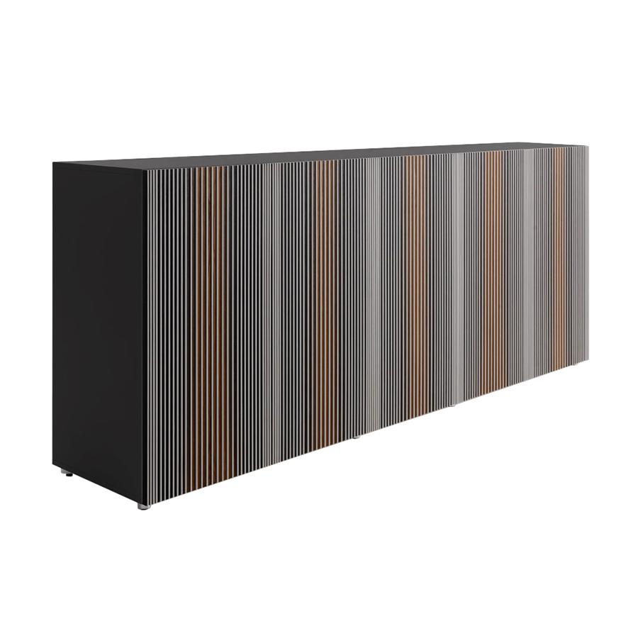 Le buffet Carlos Horm est librement inspiré par les oeuvres de l’artiste vénézuélien Carlos CruzDiez et son oeuvres d’art, qui regarde est pas un spectateur, mais un acteur qui interagit avec le meuble lui-même, en variant la couleur en fonction du point de vue, en percevant l’effet d’un rideau qui s’ouvre et se ferme. Les portes de Carlos Horm sont faites entièrement à la main par des artisans qui savent comment traiter le bois de différentes façons les plus passionnantes. Ils mettent leurs compétences et leur professionnalisme au service des architectes et des designers, en se montrant des partenaires idéaux pour transformer l’idée des créatifs en réalisation.