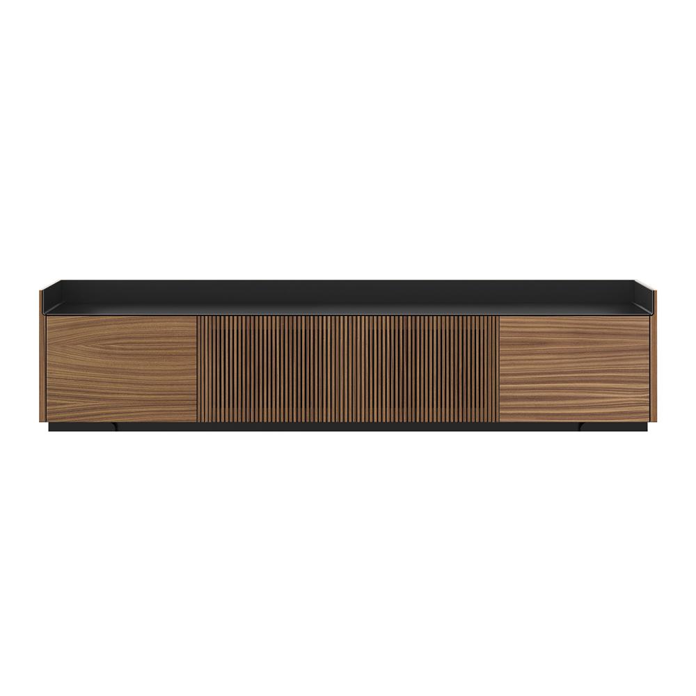 PUNT MOBLES buffet meuble STOCKHOLM avec 4 portes STH403 avec la base H 6 cm (Noyer mat / Dessus Noir / Base noire - MDF E1 et plateau en aluminium anodisé)