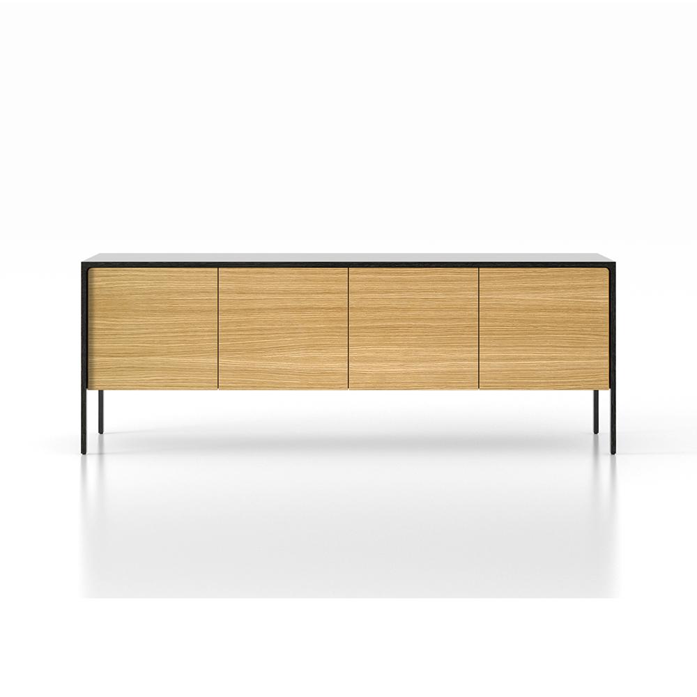 Tactile signé par Mario Ruiz pour Punt Mobles est un buffet qui se distingue par son design minimaliste et mince, soutenu par des jambes effilées avec des pieds réglables, qui donnent un aspect léger et suspendu. La ligne TACTILE n’a pas de poignées, une simple pression déclenche l’ouverture de la porte et du tiroir.