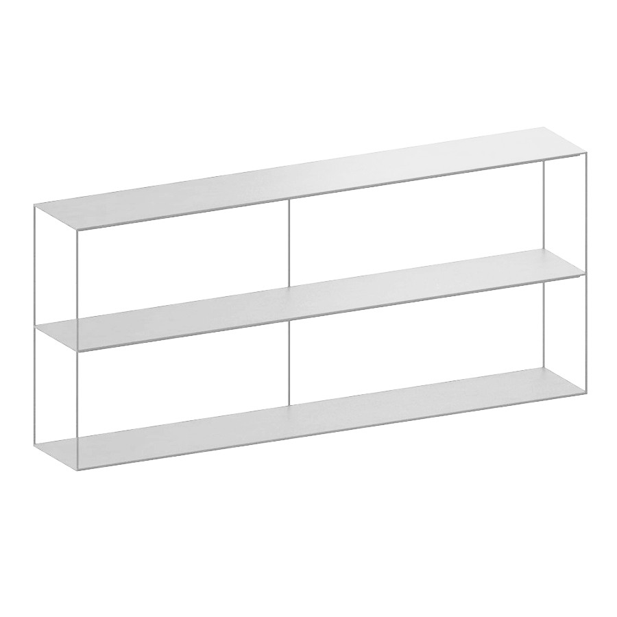 Slim Irony Sideboard se compose d'une structure en tréfilé plein d'acier 8 x 8 mm et étagères en tôle épaisseur 2 mm, peinture aux poudres époxy noire cuivrée, nouvelle version sablée, ou blanc gaufré. Espace utile entre les étagères 40 cm.