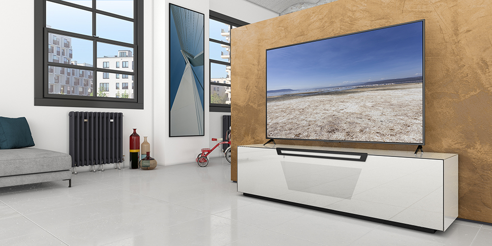 MUNARI meuble pour TV jusqu'à 65" KVT150BAS Collection VENTIMIGLIA (Blanc brillant - Verre trempé)