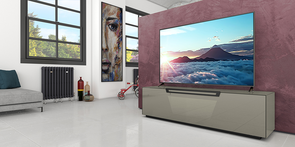 MUNARI meuble pour TV jusqu'à 65" KVT150BAS Collection VENTIMIGLIA (Gris brillant - Verre trempé)