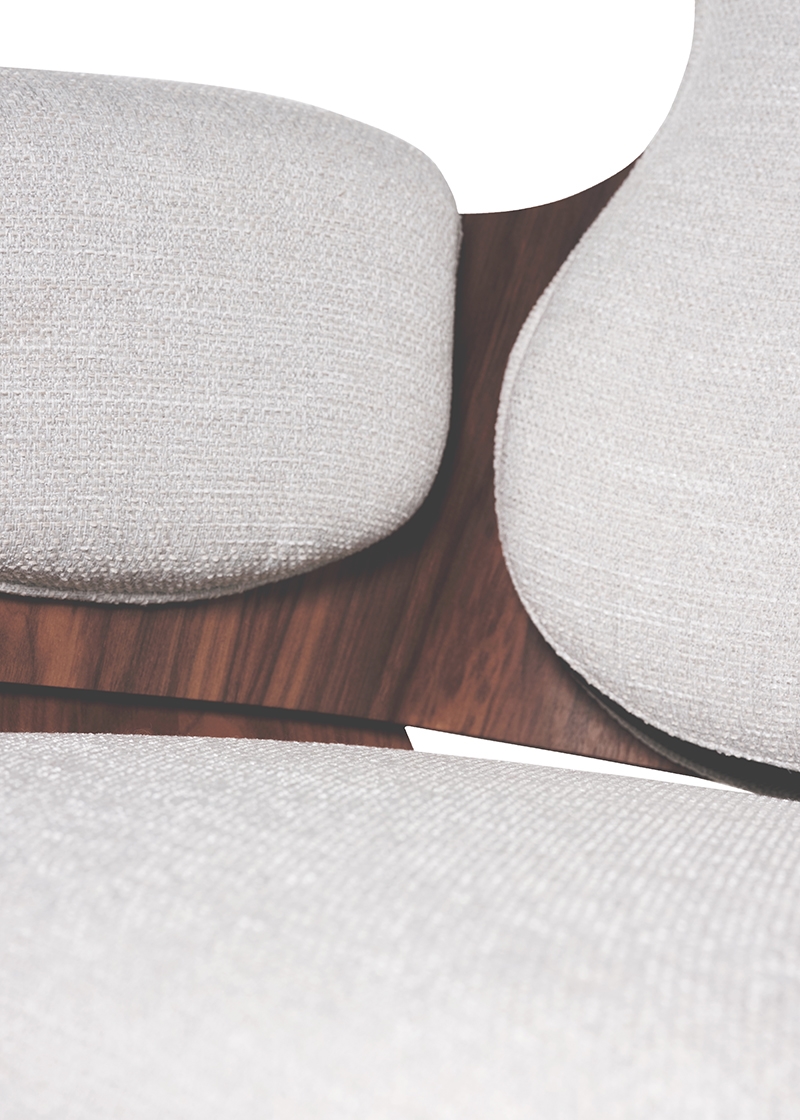 Version avec tissu Gaudì Gris Clair TG02, structure finition noyer et piètement anthracite. Pour acheter une autre finition, veuillez indiquer le code du tissu, ainsi que la finition du bois et du piètement parmi les options ci-dessous dans le champ notes de votre panier.