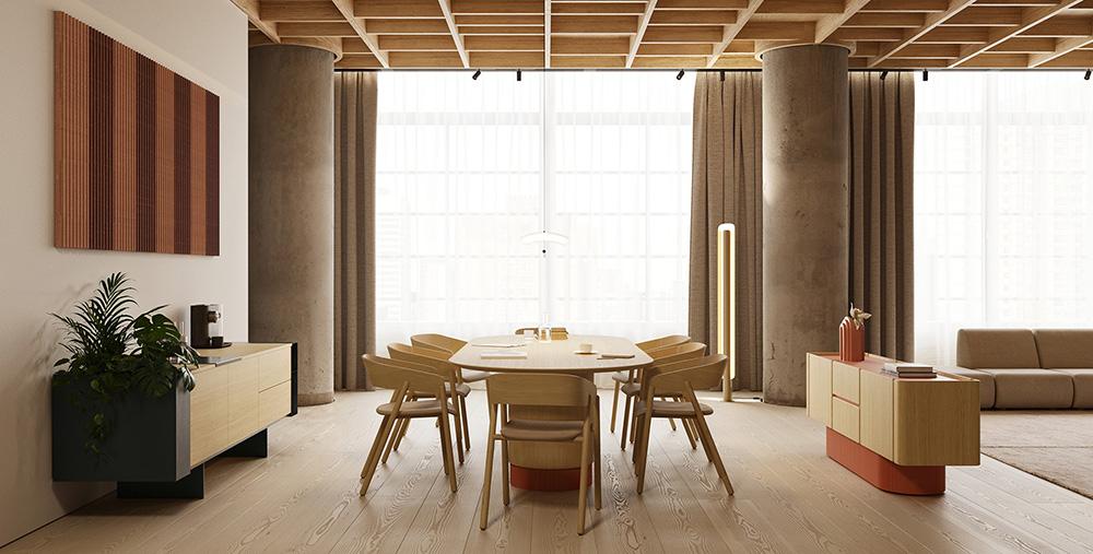 Le buffet Dune est un meuble design inspiré de la forme des dunes du désert, avec un design naturel et fonctionnel.