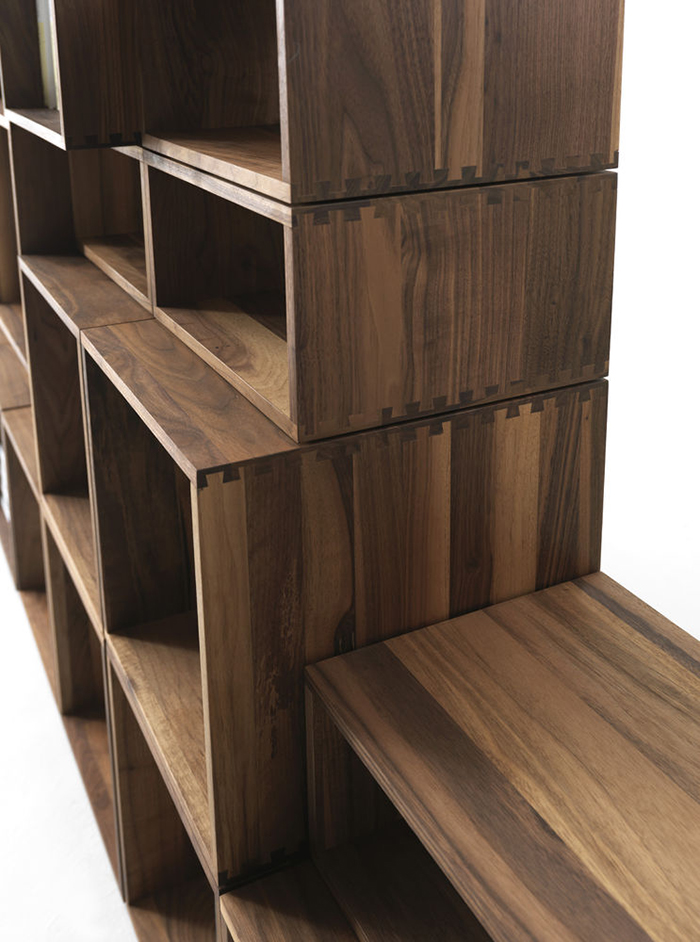 Freedom Riva 1920 est une bibliothèque réalisée en bois massif, constituée de modules à empiler et juxtaposer à travers d'une quincaillerie de montage spéciaux. Des encastrements en queue d’aronde caractérisent chaque élément. Flexible en fonction des besoins d’ameublement, on a la possibilité d’insérer fonds, portes et tiroirs assemblés avec des encastrements en queue d’aronde et dotés d’un système d’ouverture push-pull. Disponible avec des éléments « double-face » sur demande, elle peut être utilisée comme élément de séparation à l’intérieur d’une pièce. Finition : à base d’huile/cire naturelle d’origine végétale aux extraits de pin.
