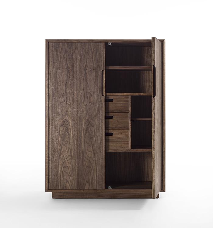 Sospiro High Riva 1920 est une buffet haut en bois massif et latté. Equipé de deux portes battantes avec poignée encastrée et profilée, qui ferment deux étagères et trois tiroirs assemblés par joints en queue d'aronde. Structure aux bords arrondis.